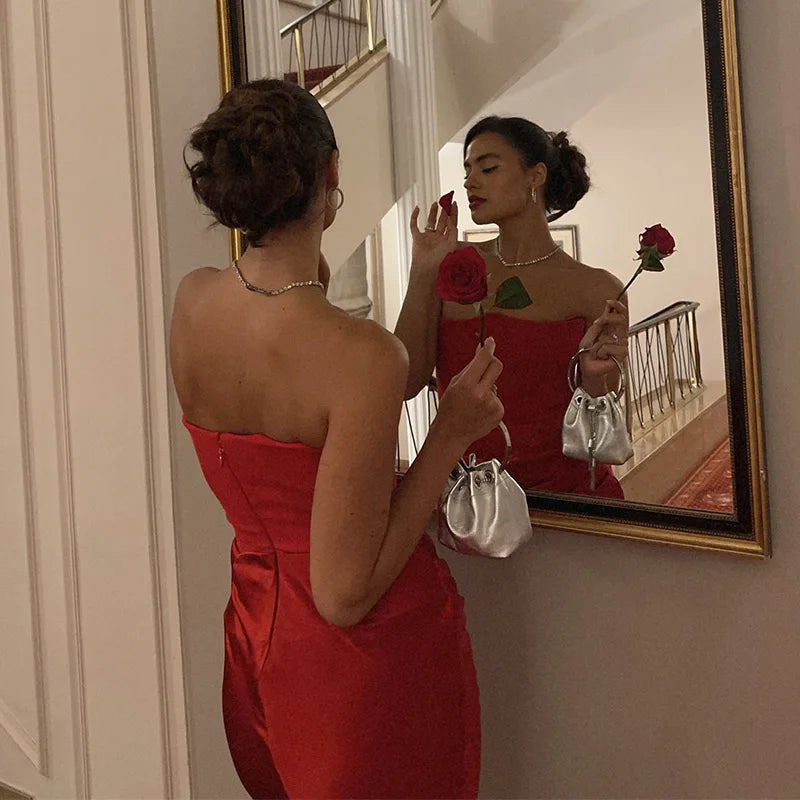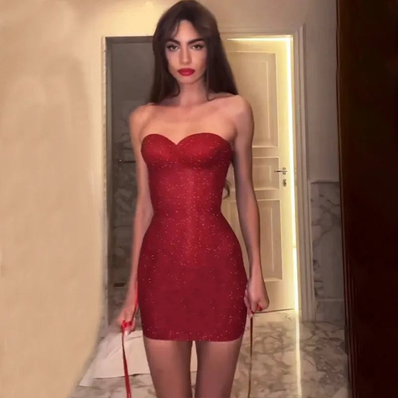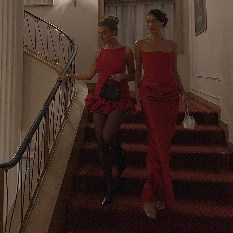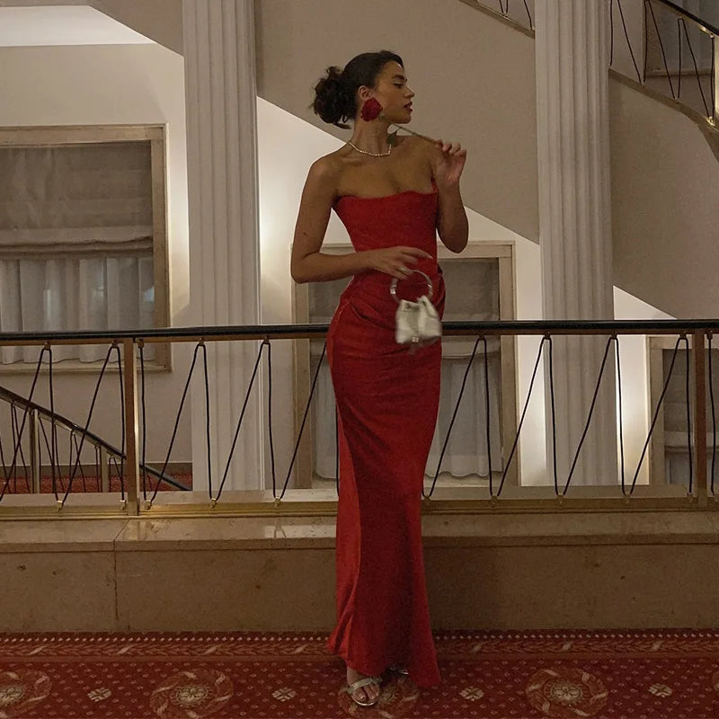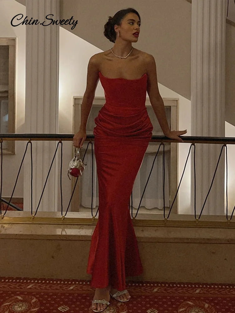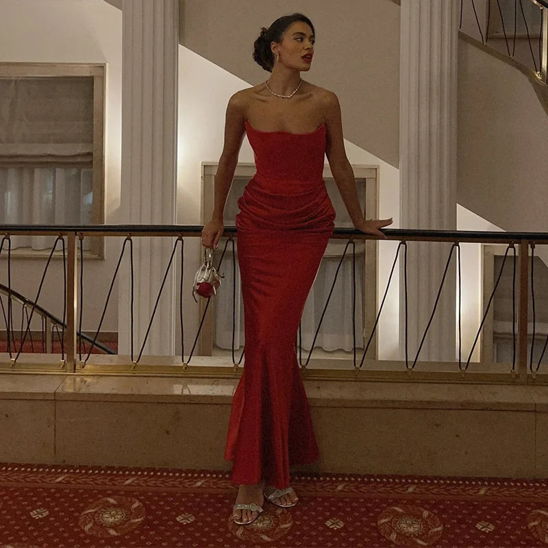 Sexy Pleat Strapless Long Dresses Women Sleeveless Backless Hip Package Lace-up Party Dress Lady New Christmas Cocktail Gowns