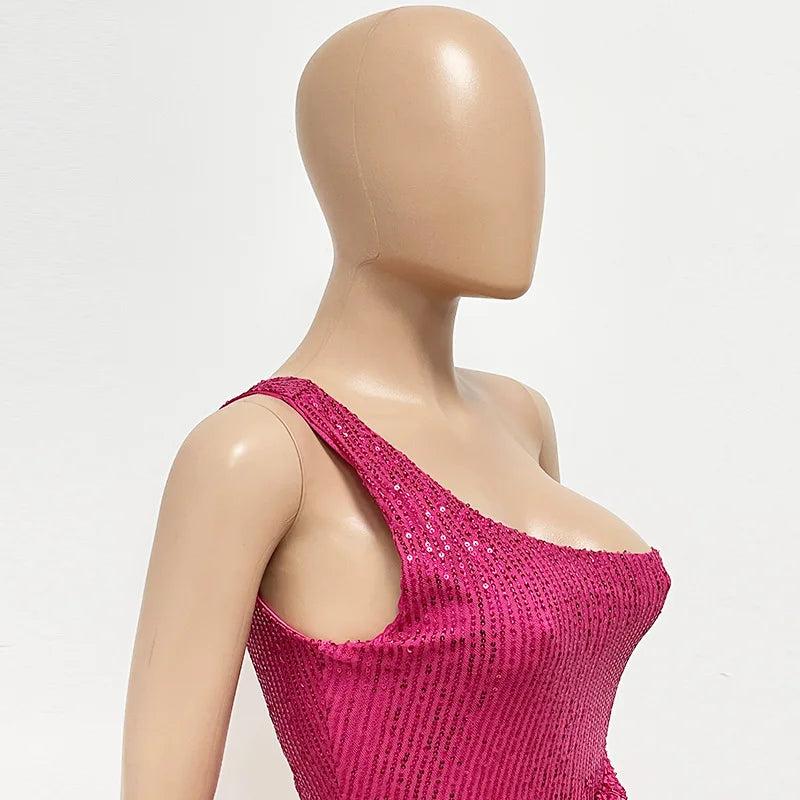 sexy women's dress summer pleat one shoulder sequin birthday evening dresses woman elegant party dresses cocktail prom dress X99
